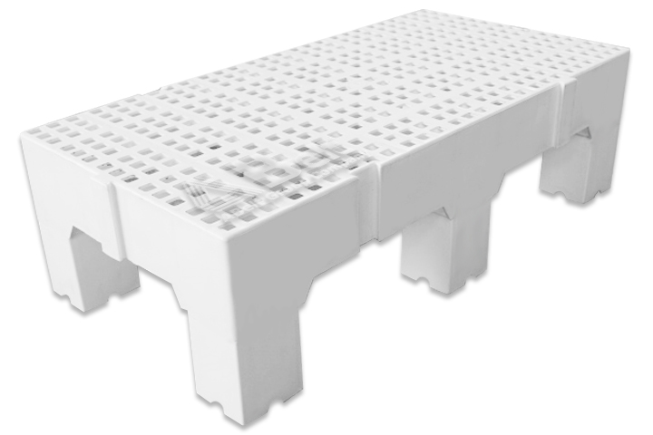 O estrado plástico modular é fabricado em polietileno de alta densidade (PEAD) ou polipropileno (PP) e atende as normas da ANVISA. Indicado para inúmeras aplicações em vestiários, banheiros, saunas, lavanderias, academias, clubes, escolas, colégios, universidades, creches, hospitais, hoteis, repúblicas, pousadas, igrejas, associações comerciais, farmácias, drogarias, açougues e frigoríficos, padarias e confeitorias, arenas e estadios de futebol, postos de saúde, câmaras frigoríficas (camara fria), áreas de estocagem, depósitos, laboratórios, canteiro de obras, almoxarifados, supermercados, mercados, sacolões, usinas, restaurantes, pizzarias, mercearias e empórios, cantinas, bares, cozinhas industriais, floriculturas, pet shop, balcão expositor, escritórios, avicultura, suinocultura, animais domésticos (cachorros, coelhos, pássaros e passarinhos, araras, aves, galinhas, hamster, carneiros, etc.) indústrias de latecínios e leites, indústrias alimentícias, bebidas, agropequárias, cooperativas, granjas, farmacêuticas, metalúrgicas, químicas, cosméticos, embalagens, eletro, eletromecânica e eletrônica, vidros, papel e celulose, plásticas, móveis e esquadrias, moto e auto peças, oficinas mecânicas, oficinas de pintura, indústrias de máquinas e equipamentos, indústria têxtil entre outras utilidades ou em áreas permanentemente molhadas.