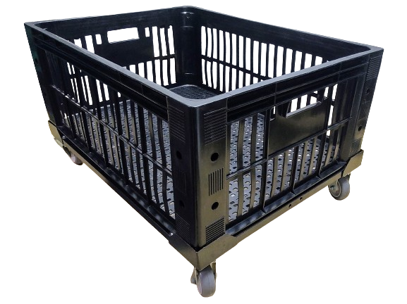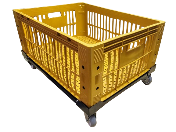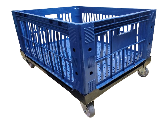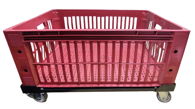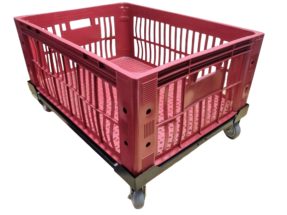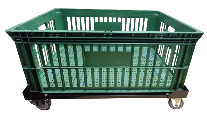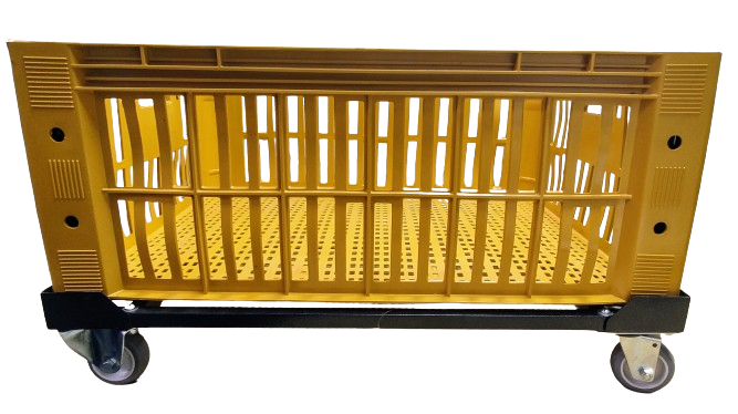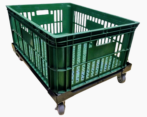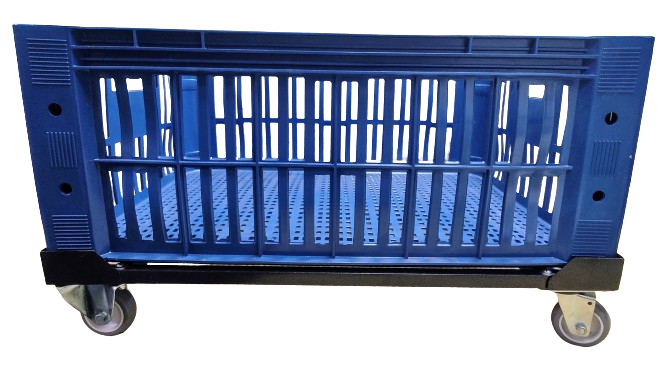 Carrinho para caixa plástica 77 x 57 x 31 cm com rodízios de Ø 3” (75mm) e carga até 180 kg