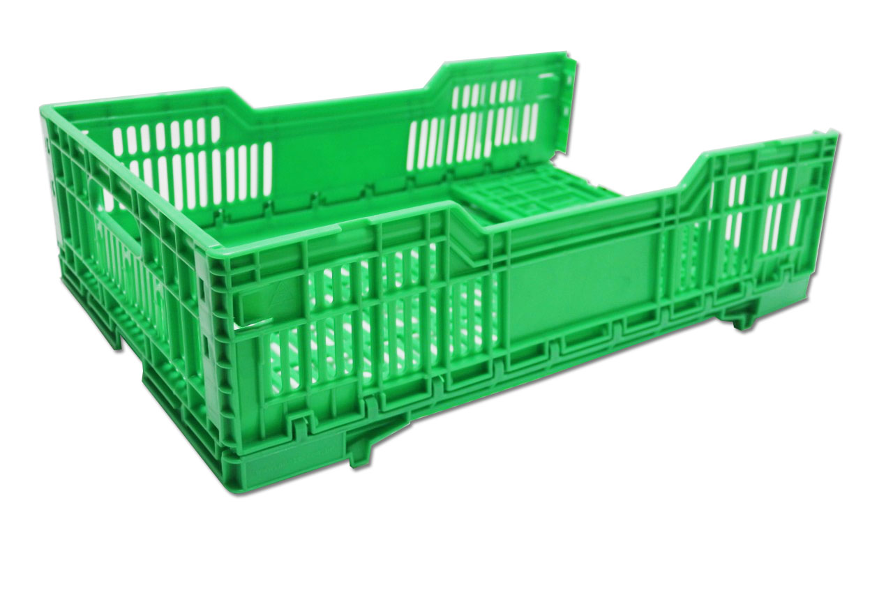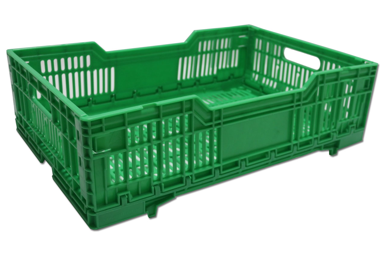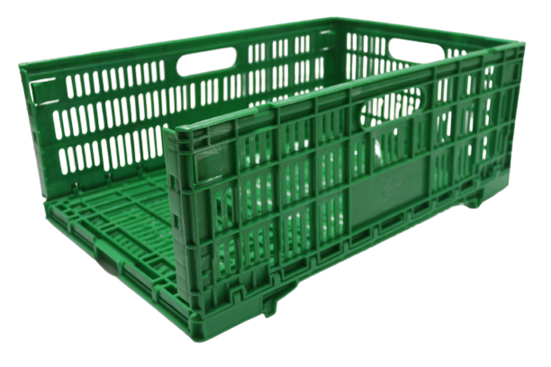 Caixa plástica vazada dobrável tem este nome pelo fato de ter uma estrutura aberta nas laterais, permitindo ótima circulação do ar em seu interior, sendo muito usada no transporte  e armazenamento de alimentos.