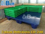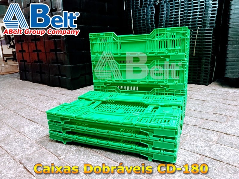 caixa plástica vazada dobrável CD-180 otimiza espaço, quando dobrada ocupa apenas 1/5 do seu tamanho original ou da caixa montada