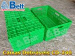 As caixas plásticas vazadas dobráveis podem ser aplicadas em transporte e armazenamento de frutas, legumes e verduras, medicamentos e produtos farmacêuticos, buffets, feiras e eventos, supermercado, sacolão e hipermercado, hortifrúti, quitandas, feiras livres, indústria de laticínios, agronegócio, colheitas, indústria têxtil, indústrias metalúrgica, centros de distribuição, E-commerce, autopeças e comércios em geral.