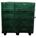 Possui as laterais vazadas e o fundo vazado, o que a torna ideal para empresas que necessitam armazenar produtos ainda úmidos ou congelados, de maneira que a água não escorra nos produtos armazenados na caixa para o que está abaixo no empilhamento.